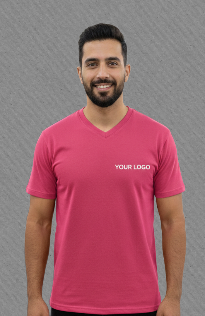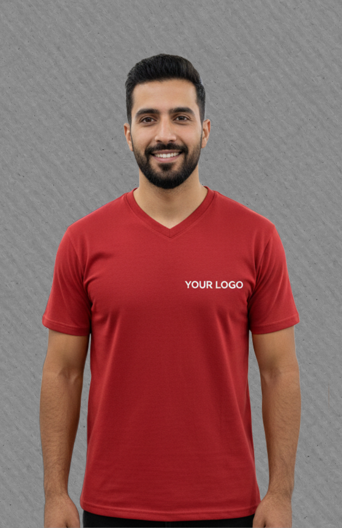 - Design Approval: Our team helps you visualize the custom branded V-neck shirts Dubai with digital mockups.